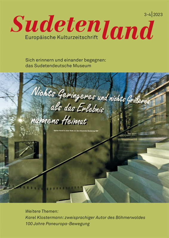 Der neue Mitherausgeber stellt sich vor: Im aktuellen Heft finden Sie Berichte von Eva Haupt über die Dauerausstellung sowie über spannende Einzelausstellungen im Sudetendeutschen Museum, Raimund Paleczek beleuchtet die Hintergründe eines interessanten Objekts aus den Beständen. Das Porträt ist dem Böhmerwalddichter Kar(e)l Klostermann (1848–1923) gewidmet, der sowohl auf Deutsch als auch auf Tschechisch geschrieben und das literarische Bild dieser Landschaft maßgeblich geprägt hat. Martin Posselt und Marian Švejda erinnern an die noch heute aktuellen Ideen des Begründers der Paneuropa-Bewegung Richard Coudenhove-Kalergi. Miloš Doležal entdeckt in Gertrude Urzidil eine eigenständige Lyrikerin: Einige ihrer Gedichte finden Sie im Heft. Zdeněk Mareček denkt über die Rolle des Übersetzers in Zeiten künstlicher Intelligenz nach, und Monika Halbinger hat mit gemischten Gefühlen Milan Kunderas berühmten Roman „Die unerträgliche Leichtigkeit des Seins“ wiedergelesen. Hansjürgen Gartner lässt zwei zeitgenössische Künstler, Roland Helmer und Christian Thanhäuser, in Dialog treten, Niels Beintker gratuliert dem Lyriker Rainer Kunze zum Geburtstag, und Peter Becher erinnert an Franz Peter Künzel, den im Mai verstorbenen langjährigen Herausgeber der Zeitschrift. Außerdem finden Sie im Heft Stefanie Boses preisgekrönte Übersetzung eines Romanausschnitts von Anna Beata Háblová, Gedichte von Ursula Haas und ein Feuilleton von Wolfgang Sréter.