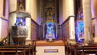Mit Michael Vogtmann (Der Tod), Heiko Ruprecht (Ackermann) und Sirka Schwartz-Uppendieck, die auf der Orgel Musik von Dorothea Hofmann spielte. 100 Besucher sahen eine beeindruckende Aufführung des Stücks von Johannes von Saaz, das sich mit grundsätzlichen Fragen des Umgangs mit dem Tod und dem damit verbundenen Schmerz auseinandersetzt.